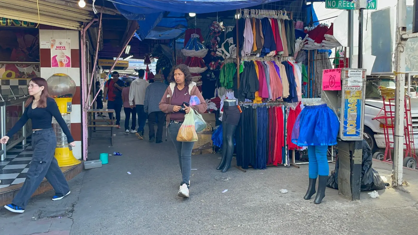 "Hay mucha gente, la gente va a pasearse, ya a partir del miércoles que es día 10 empieza a haber más lana, ahorita han estado viendo, aunque sí se están incrementando las ventas".