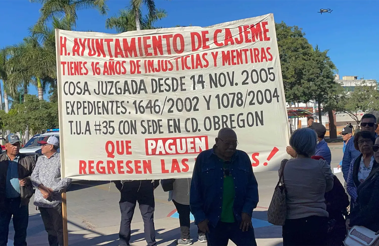 Con lona en mano, en la que se describe el motivo de su lucha, los ejidatarios llegaron al edifico de gobierno para tener un encuentro con las autoridades. Reiteraron que en noviembre del año 2005 inició este procedimiento legal. Inicialmente, pedían que el Gobierno Municipal cumpliera con el pago por el uso de siete hectáreas ubicadas en la colonia Benito Juárez; sin embargo, en el trienio 2021-2024 (con el alcalde Javier Lamarque) solicitaron que se les devolviera el terreno, pues el Ayuntamiento dijo no contar con recurso para pagarle lo correspondiente.