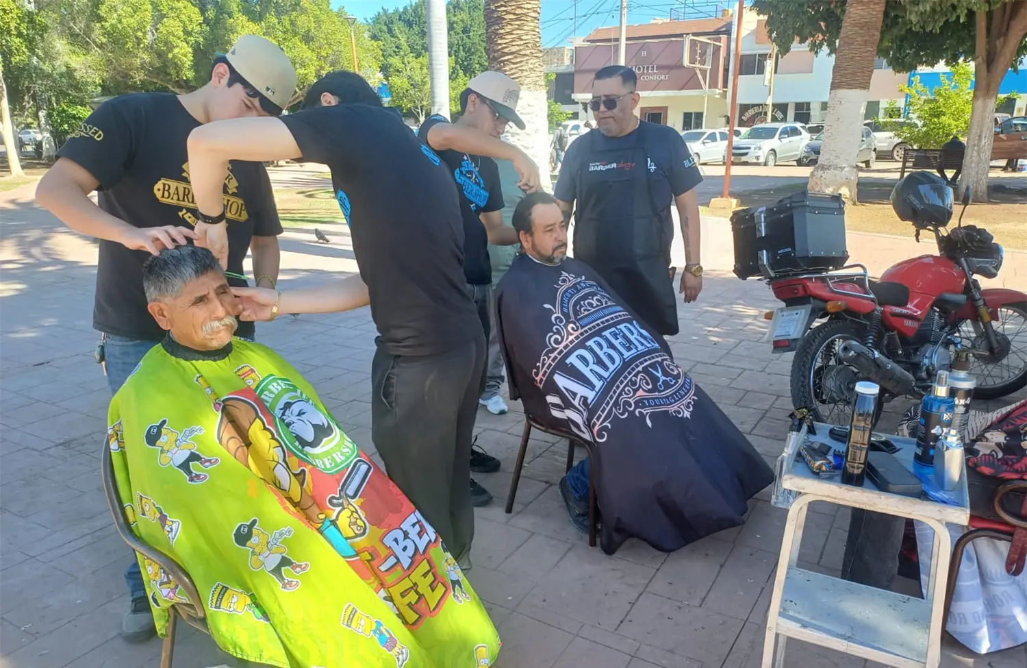 Richard Sandoval encontró la manera de combinar la labor social con el aprendizaje de sus alumnos, al acudir un viernes cada dos semanas, a la plaza Lázaro Cárdenas en Ciudad Obregón, donde cortan el cabello de manera gratuita a todos quienes se acercan a solicitar sus servicios.