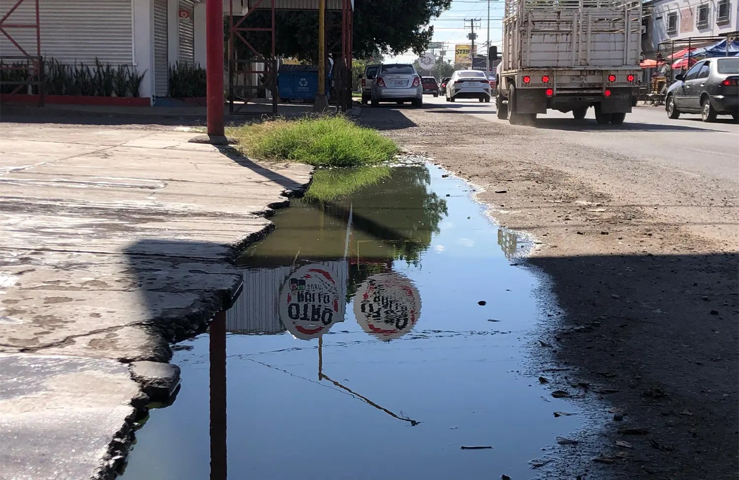 En el caso de la fuga de agua limpia, se encuentra por fuera de un negocio de mariscos que está al aire libre, lo que da una mala imagen al mismo, así como a un negocio de fisioterapia.