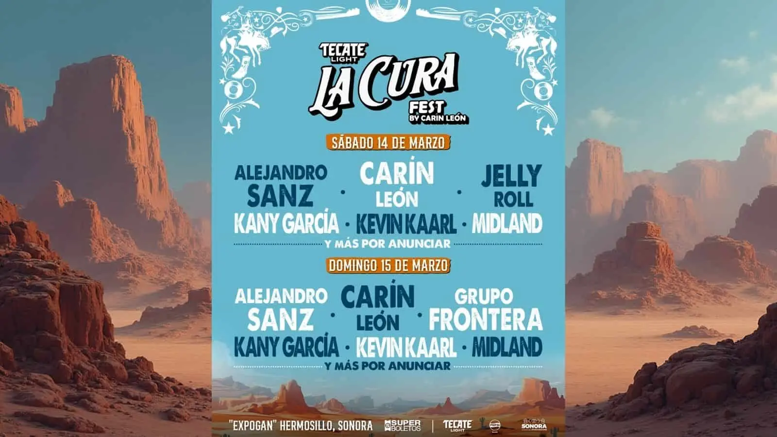 Con un mensaje directo y muy al estilo del cantante: "Razita Ahora sí. Line up oficial de La Cura Fest... ¡Qué chingón se pondrá este 14 y 15 de marzo en la Expogan Hermosillo Sonora!", Carín León confirmó que el festival contará con una mezcla poderosa de artistas nacionales e internacionales que cruzan géneros, idiomas y generaciones.