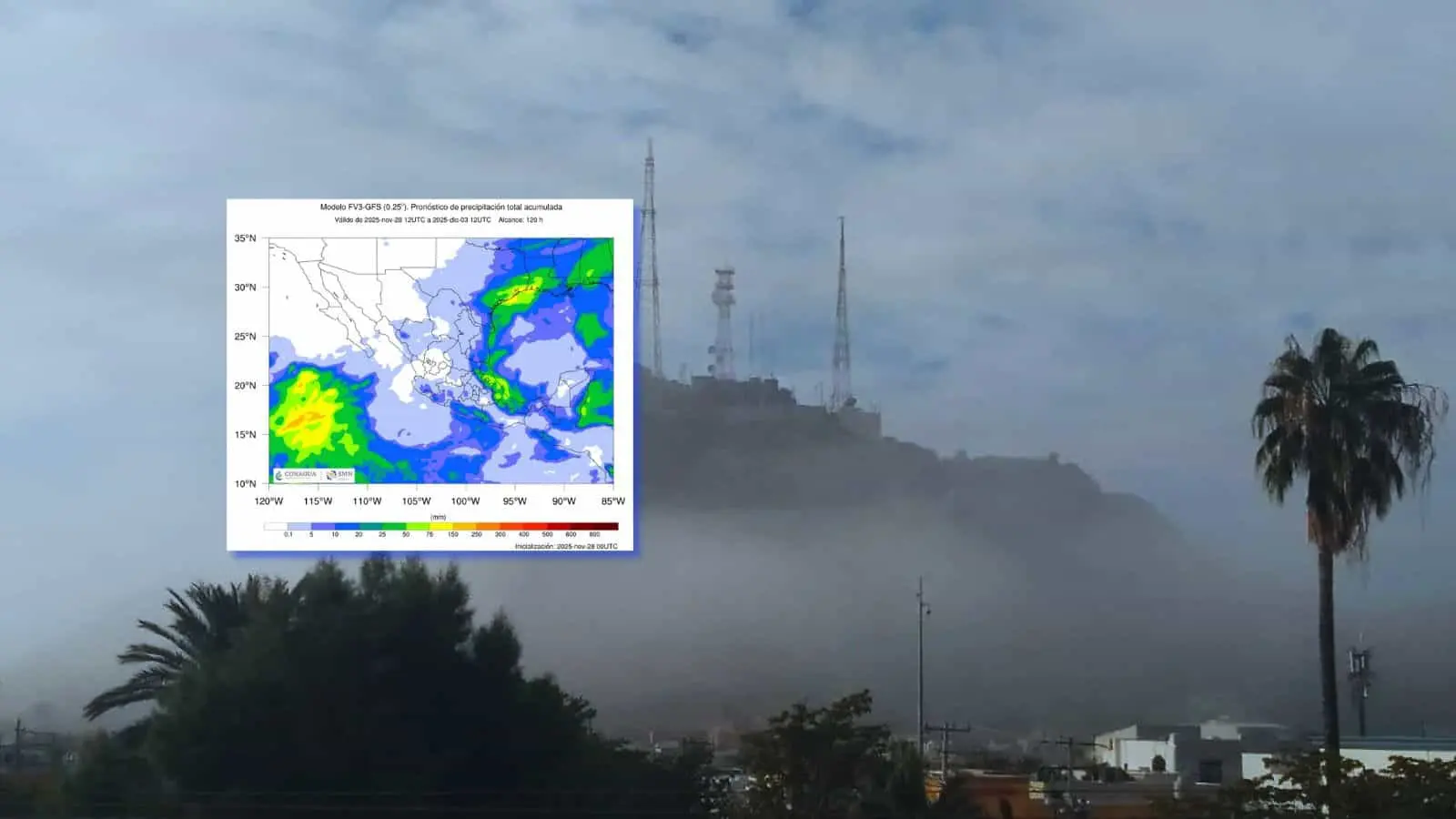 Asimismo, un nuevo frente frío en el norte del estado de Sonora se espera a partir del próximo 3 de diciembre, el cual podría provocar algunas lluvias moderadas, rachas de viento fuertes y se prevé posible caída de nieve/aguanieve sobre la región montañosa del estado de Sonora.