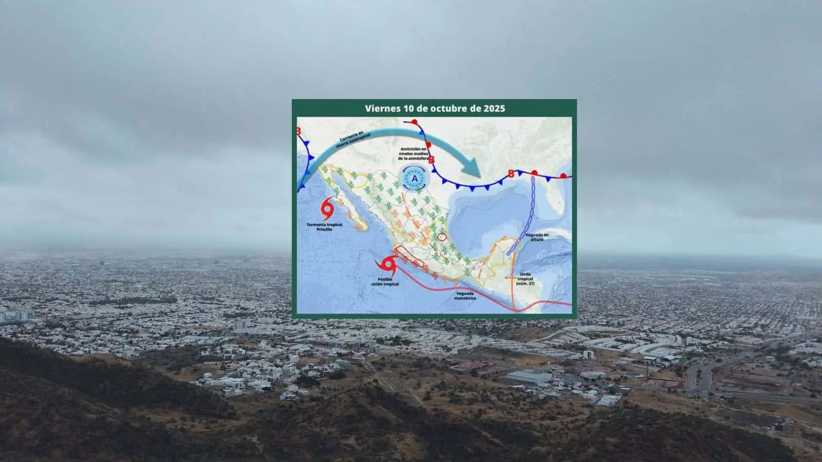 Posteriormente, hoy "Priscilla" se acercará a la Península de Baja California ya como depresión tropical, lo que generará probabilidades de lluvia para municipios del noroeste del estado de Sonora.