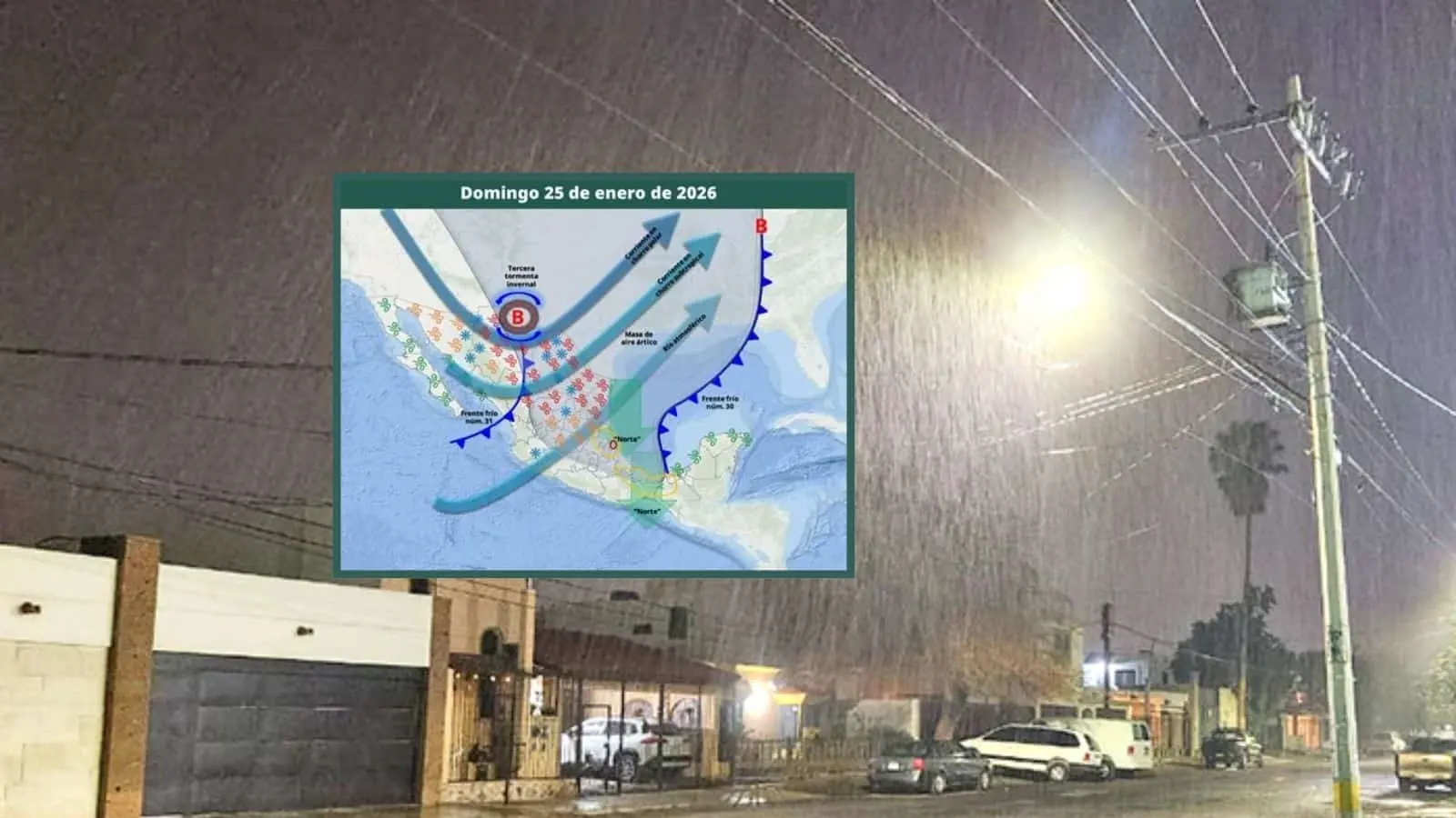 De acuerdo al Sistema Meteorológico Nacional (SMN), durante el fin de semana, la tercera tormenta invernal, un río atmosférico, el frente frío (núm. 31) y su masa de aire ártico ocasionarán condiciones invernales sobre el noroeste del país.