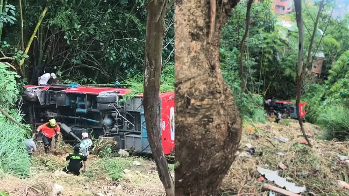 Los accidentes de tránsito continúan marcando la temporada decembrina en Colombia. La mañana de este lunes 22 de diciembre se registró un fuerte siniestro vial en el kilómetro 3 de la vía Santa Elena, en zona rural de Medellín, donde un bus de transporte intermunicipal cayó a un precipicio tras chocar con un camión.