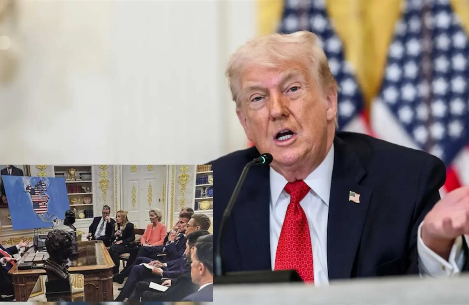 La fotografía, que combina una escena real con un mapa falso, fue difundida en medio de un ambiente de tensiones diplomáticas con Europa y otros países aliados.