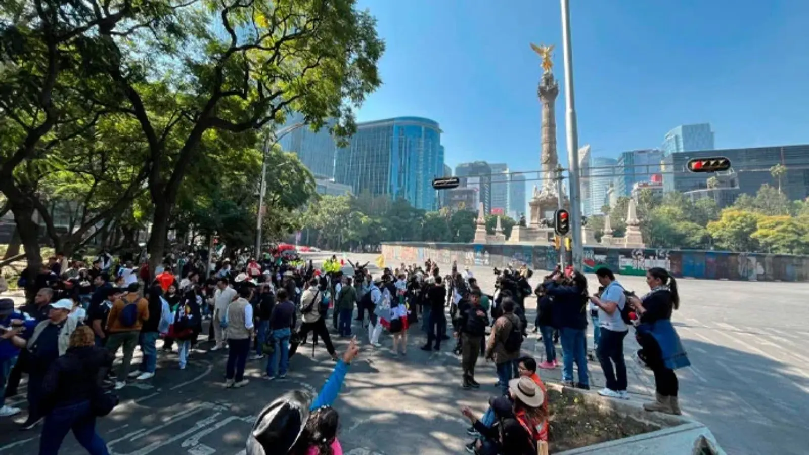 Mientras la presidenta Claudia Sheinbaum encabezaba el acto oficial en el Zócalo, en el Ángel de la Independencia, uno de los principales puntos de encuentro, apenas unas 20 personas vestidas de blanco estaban presentes alrededor de las 10:30 de la mañana.