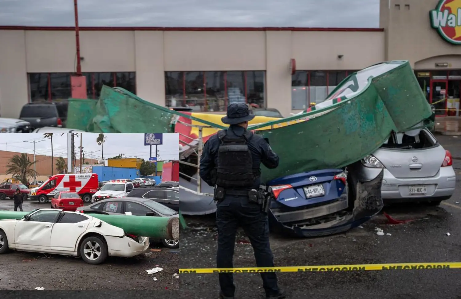 El incidente ocurrió alrededor de las 11:00 a 11:30 horas en la sucursal ubicada en Plaza Soler, entre la calle Segunda y la calle Independencia, cuando el poste que sostenía el anuncio cayó directamente sobre el estacionamiento del lugar, afectando al menos cinco vehículos y dejando a una persona con lesiones menores.