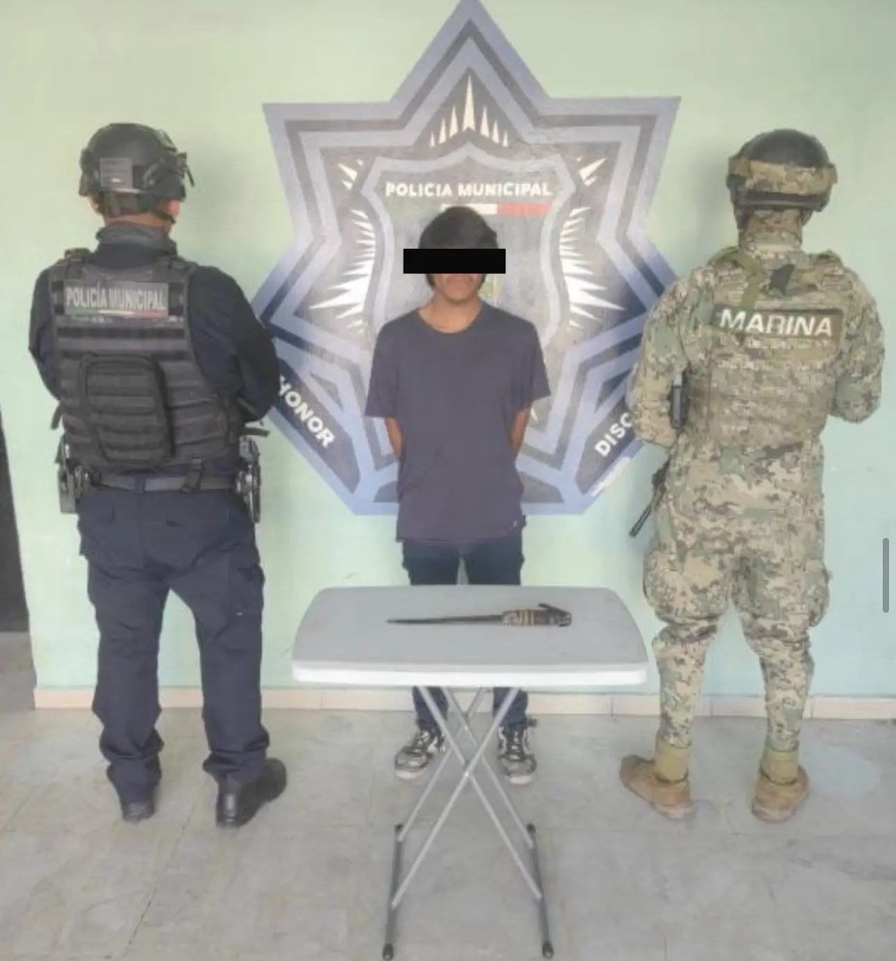 Un hombre de 23 años de edad fue detenido por elementos de la Policía Municipal, por la portación de un arma blanca, mismo que, podría estar relacionado con el ataque a una muchacha registrado la noche del martes.