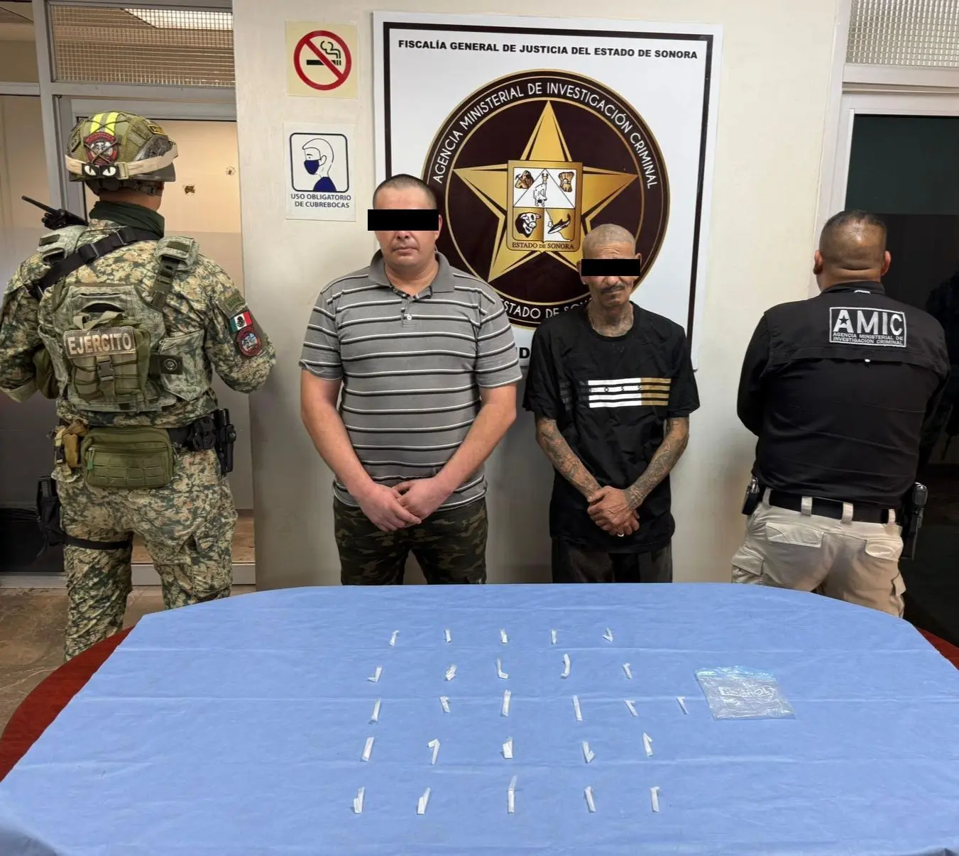 La detención se realizó el pasado 25 de octubre, en la colonia Luis Echeverría, al sur de Ciudad Obregón, tras una intervención en la que se les localizó a los sujetos 26 envoltorios con "crystal", después de una revisión corporal y de pertenencias.