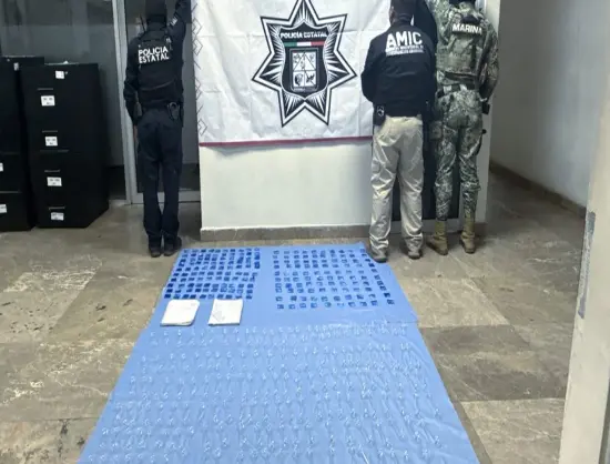 De acuerdo con información compartida por el Gabinete de Seguridad de México, fueron un total de 200 dosis de metanfetamina o cristal aseguradas.