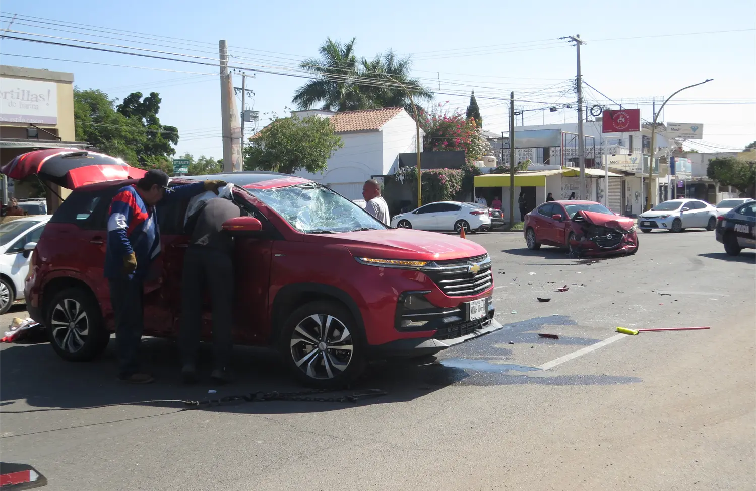 Se informó que, la camioneta transitaba sobre la California hacia el norte, cuando el sedán; que iba hacia el poniente, la embistió en el lateral izquierdo.