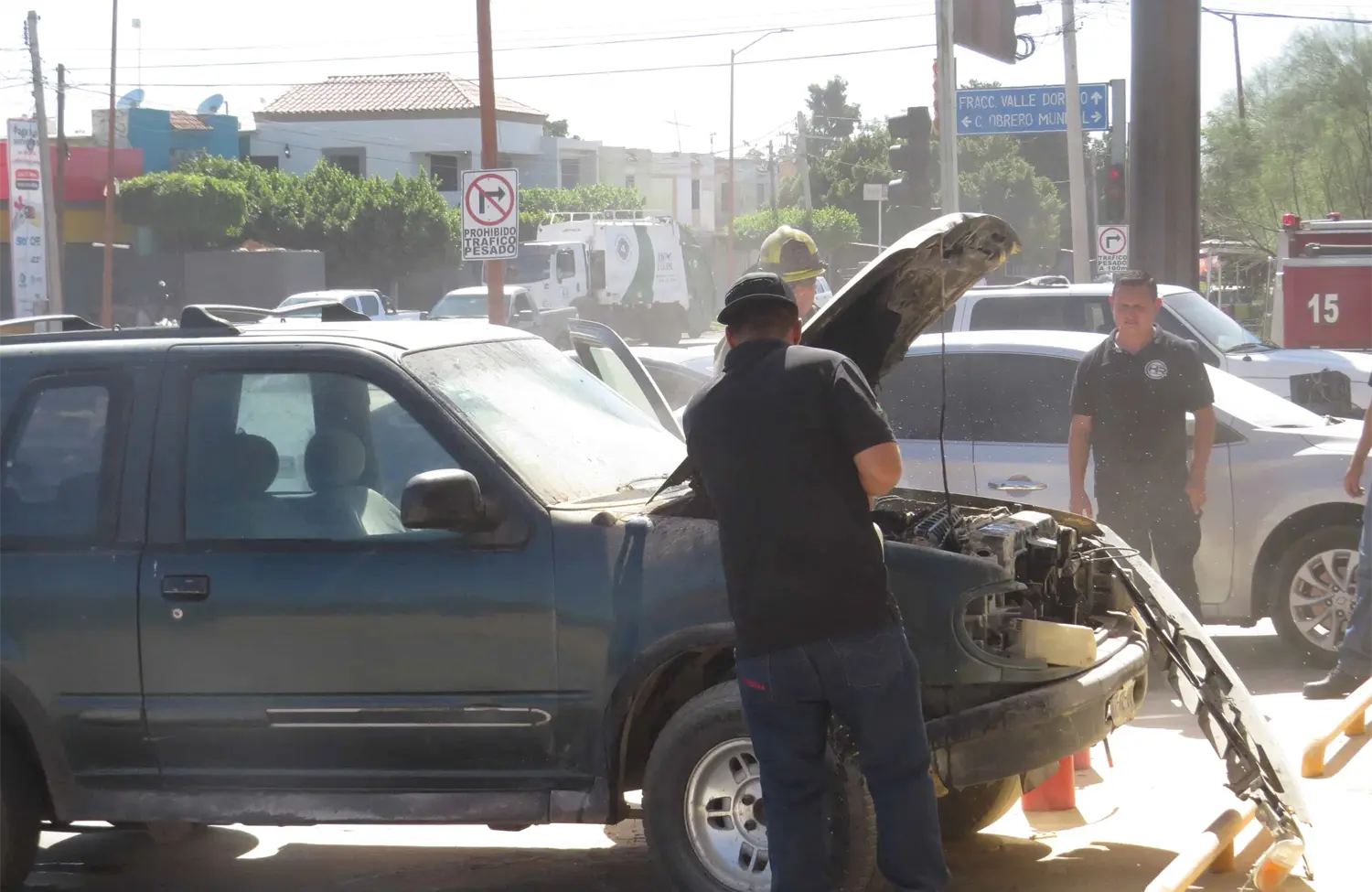 Oportunamente, trabajadores de una empresa de extintores circulaban por la calle Jalisco cuando observaron la camioneta envuelta en una nube de humo, por lo que bajaron, y con extintores en mano empezaron a combatir el fuego, confinándolo en el compartimiento del motor.