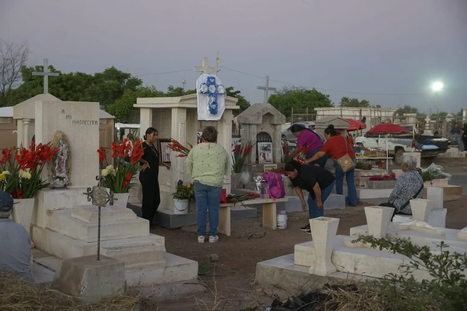 Hasta la tarde del domingo, visitantes seguían llegando a los panteones de Navojoa para visitar a los fieles difuntos.