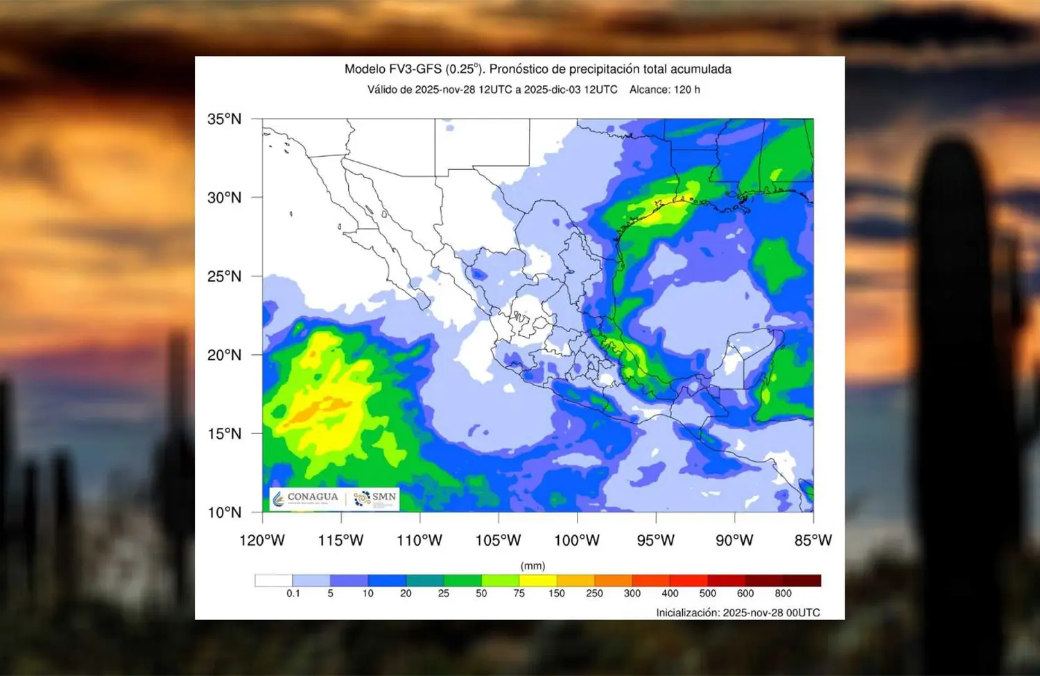 La dependencia adelantó que un nuevo sistema invernal ingresará a Sonora del 3 al 6 de diciembre, generando lluvias de moderadas a fuertes, descenso marcado de temperaturas, rachas intensas de viento y la posible caída de nieve o aguanieve en zonas de montaña.