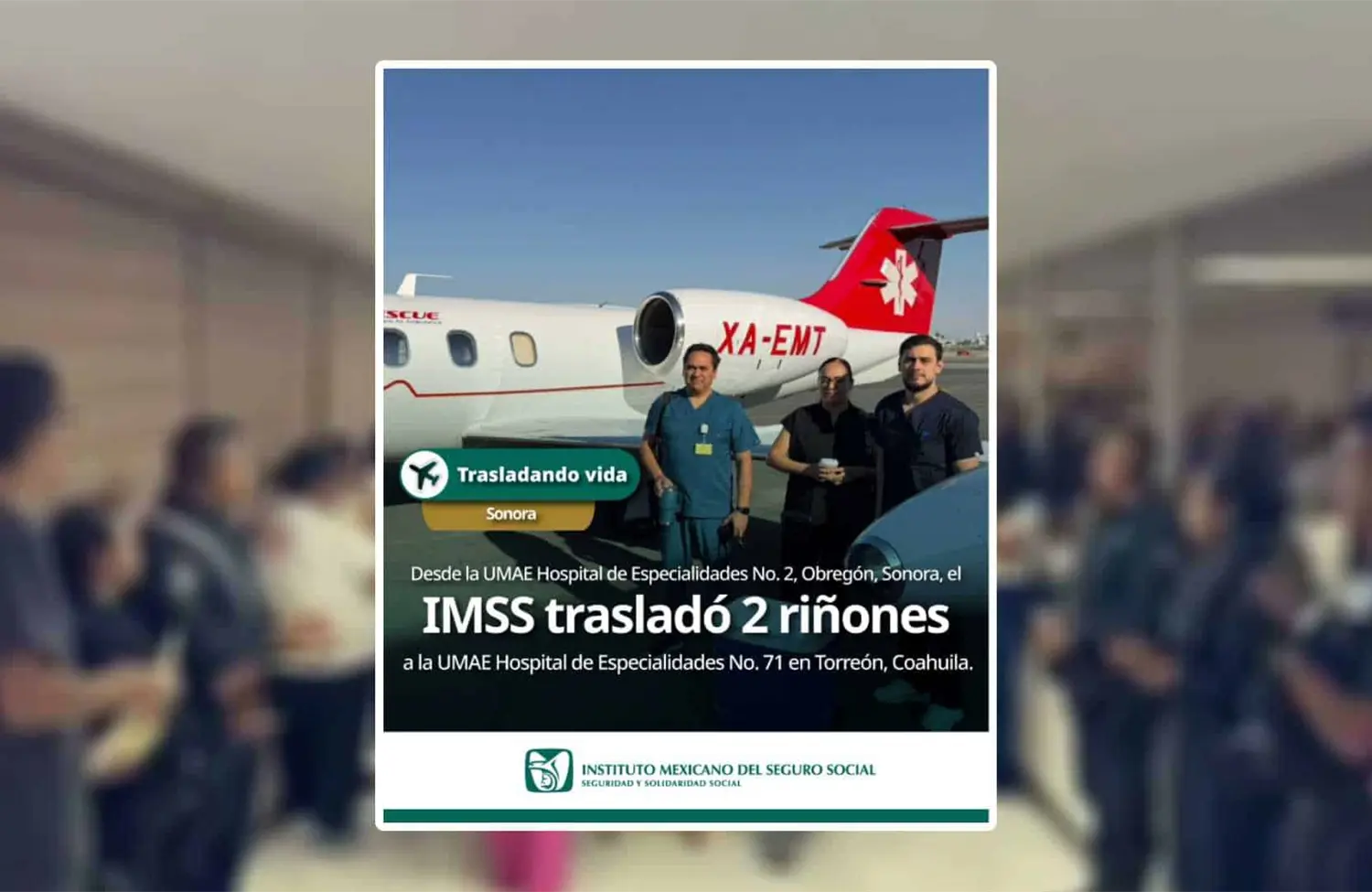 El procedimiento fue coordinado por especialistas del Instituto Mexicano del Seguro Social (IMSS). Desde la Unidad Médica de Alta Especialidad (UMAE) Hospital de Especialidades Número 2, en Ciudad Obregón, los órganos fueron trasladados hacia la UMAE de Torreón, donde los receptores ya esperaban.
