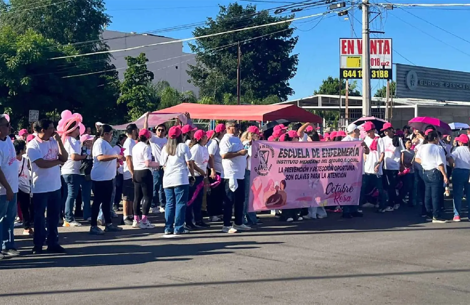 La Caminata Rosa contó con la participación de escuelas, organizaciones civiles, trabajadores del IMSS y ciudadanía en general, quienes se unieron para fortalecer los esfuerzos de concientización que se desarrollan durante todo el mes de octubre. El color rosa, presente en playeras, globos y pancartas, así como el lazo rosa, símbolo internacional de esta causa, llenaron las calles de energía y esperanza.