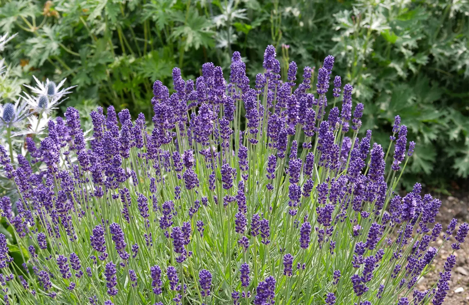 Es un arbusto con hojas estrechas y gris verdosas. Tiene flores pequeñas color violeta o lila que se agrupan en espigas alargadas. Desprende un aroma fresco y relajante que ayuda a reducir olores fuertes, sobre todo en baños y habitaciones. Esta planta necesita sol directo, poco riego y tierra bien aireada. Puedes ubicarla en lugares soleados o junto a ventanas.