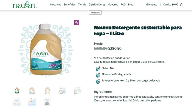 Finalmente, Newen detergente líquido lo puedes encontrar en su propia tienda digital a un precio de 280.50 pesos, en Amazon está a 268 pesos, y en Walmart y Bodega Aurrerá en 351 pesos, costo en su presentación de litro.