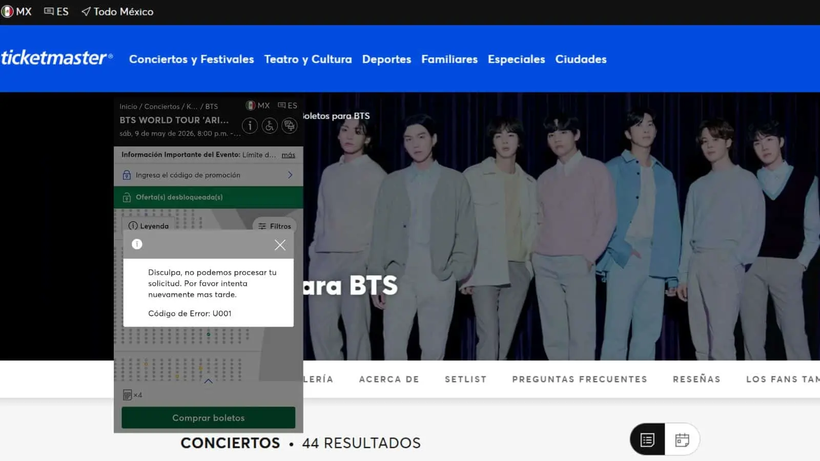 En ventas con alto tráfico, como la de BTS, algunas transacciones pueden quedar inconclusas por saturación del sistema sin que eso signifique que los boletos estén asegurados.