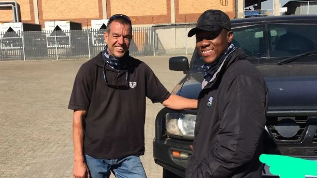La situación con el video por el que se hizo viral es la siguiente: viajaba junto a su compañero, Lloyd Mtombeni, en una camioneta blindada de transporte de valores. De pronto, fueron emboscados por un grupo de hombres armados.