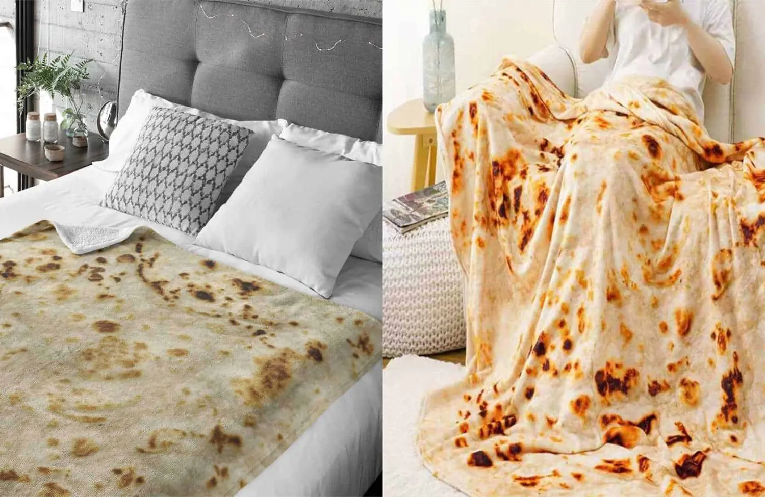 Estas mantas, conocidas también como manta de burrito o tortilla blanket, simulan una tortilla gigante que permite “envolverse” como si uno fuera un burrito, convirtiéndolas en un detalle divertido, práctico y cargado de identidad regional.