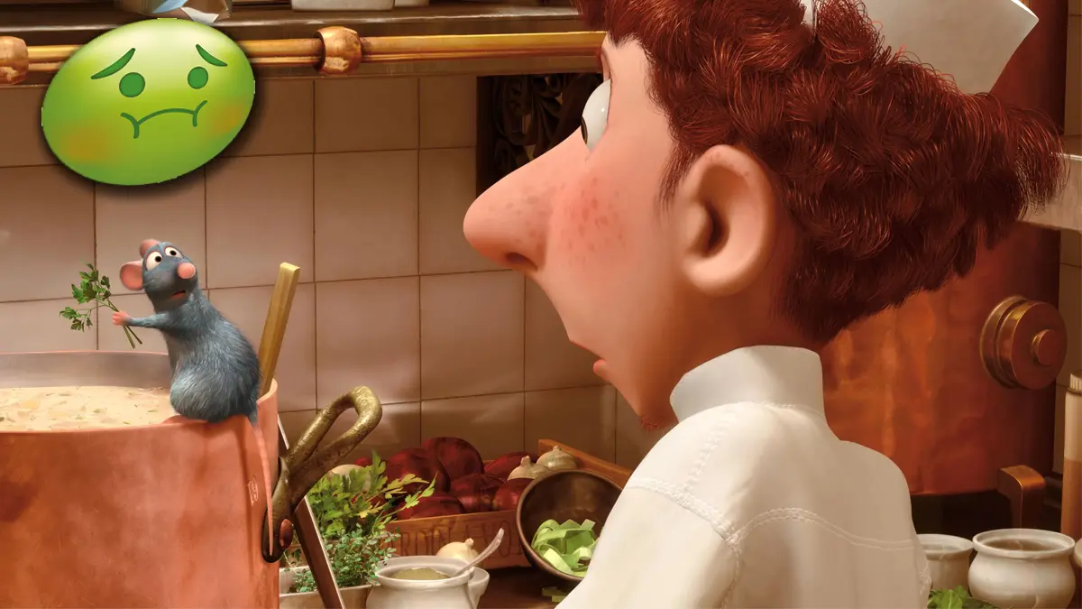 Como recordarás, Ratatouille aborda el tema de un jovencito, Alfredo Linguini, que busca convertirse en cocinero o chef; sin embargo, no tiene las cualidades para ello, no así una rata gris llamada Remy, que tiene un olfato privilegiado que ayuda al chef desde su cabeza, ya que la ratita se mete debajo de la cabeza y con los mechones controla a su humano.