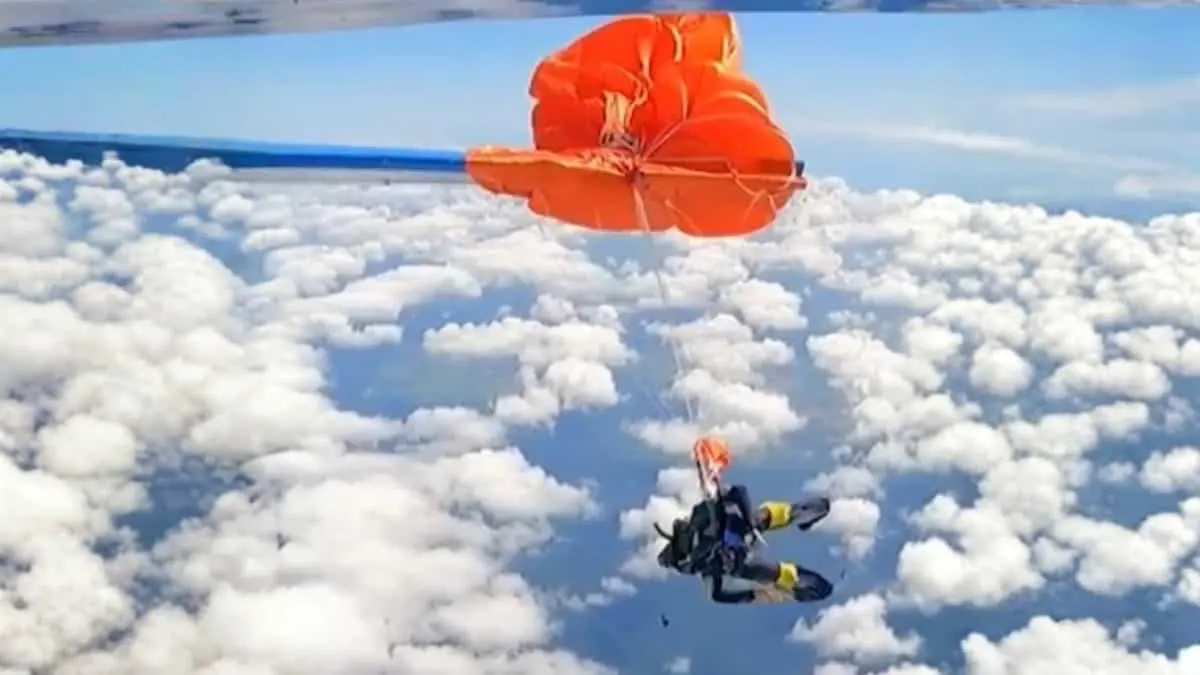 Durante la confusión, otro participante cayó sin intención de saltar, lo que añadió más tensión a la situación. En las imágenes se ve al paracaidista atrapado intentando liberarse con un cuchillo especial incluido en el equipo avanzado.